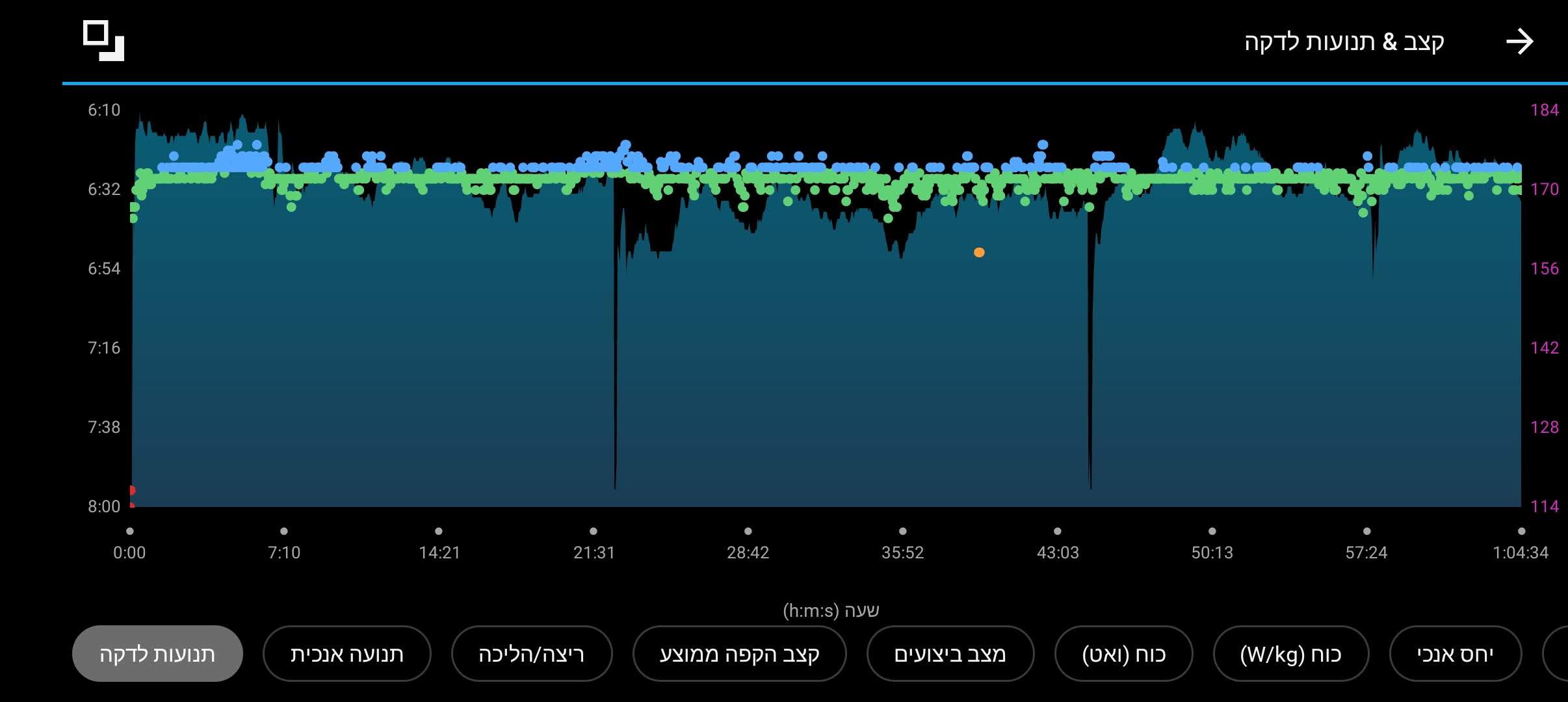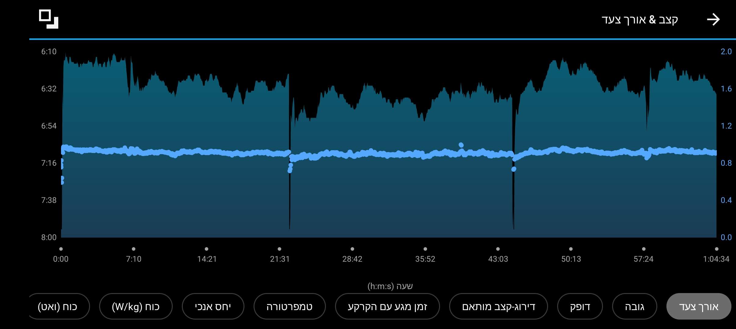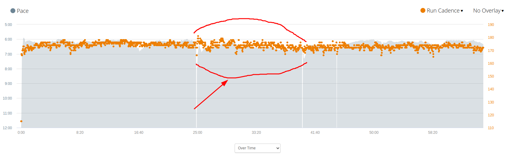 Средний каденс при этом остался прежним (увеличился немного разброс из-за кочек, ямок, острых травинок и т.д.)