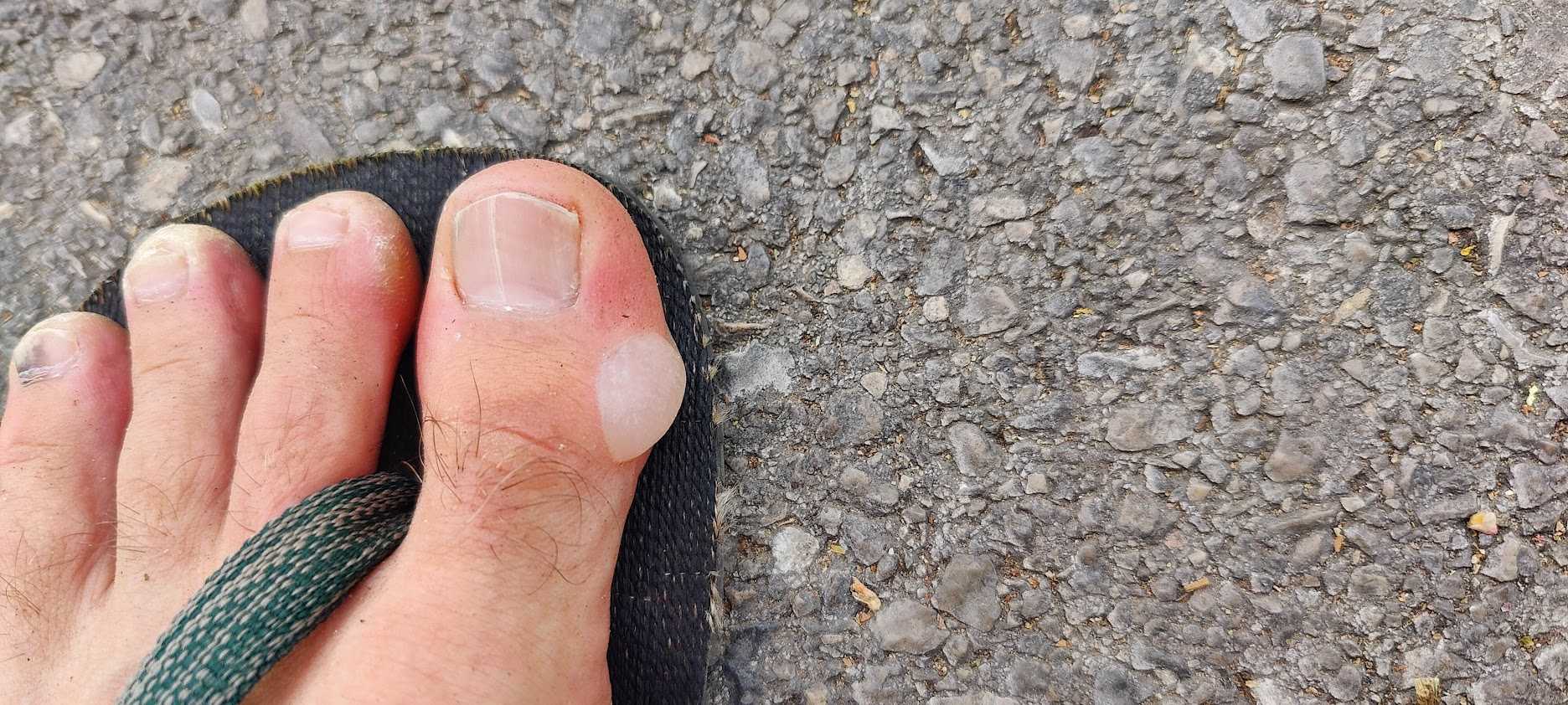 Сделал первую пробную пробежку — протрусил десятку: https://www.strava.com/activities/11147890089. По привычке затянул шнурки потуже, в результате натер между пальцами большие дыры до крови (фото есть у редакции). Но дня через три уже всё заросло и можно было пробовать снова.